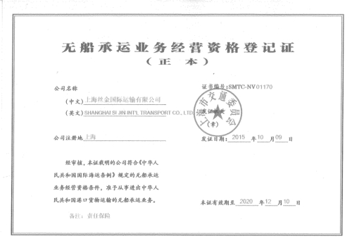 上海丝金国际运输有限公司(简称“上海丝金”)创立于1996年,是最早的由国家相关部门批复成立的国际货运代理公司之一。公司成立之初主营上海海运出口集装箱订舱平台业务,目前所代理的集装箱船公司齐全,在MSK、MSC、CMA、COSCO、HPL、ONE、EMC、OOCL、YML、PIL、WHL、SML、MCC等各大班轮公司均有一定的配载量,年均订舱出运总箱量超过10万TEU。凭借公司整体实力和行业认可度,2015年被上海航运交易所吸纳成为SCFI指数编委成员。2019年,丝金国际加入乐舱集团,依托乐舱集团整体优势,稳步推进产业互联网的改造。丝金国际订舱平台是服务与科技的平台,通过在线订舱、在线提单确认、进程反馈、异常环节预警机制、单证流转、电子账务等各个环节体现订舱平台的价值。